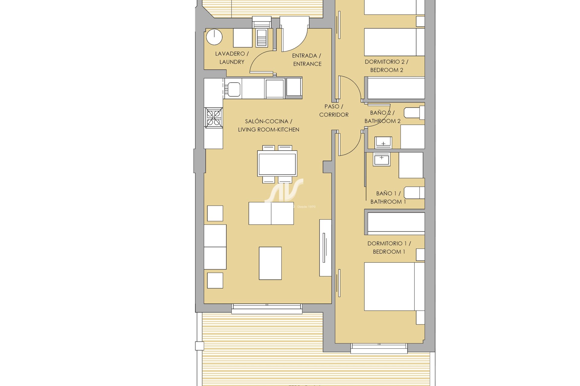 Das Innere der Wohnungen ist sorgfältig gestaltet, um Komfort und Funktionalität zu bieten. Die Apartments, High-Bungalows und Low-Bungalows sind in Konfigurationen mit 2 oder 3 Schlafzimmern erhältlich, alle mit 2 Bädern, was Komfort für Familien unterschiedlicher Größe garantiert. Die Immobilien verfügen über Einbauschränke, die den Stauraum optimieren und Ordnung halten. Der Keramikboden verleiht einen modernen Touch und ist pflegeleicht, ideal für den heutigen Lebensstil. Darüber hinaus sind die Wohnungen mit Klimaanlage und Vorinstallation für Klimaanlagen ausgestattet, um das ganze Jahr über ein angenehmes Ambiente zu gewährleisten.