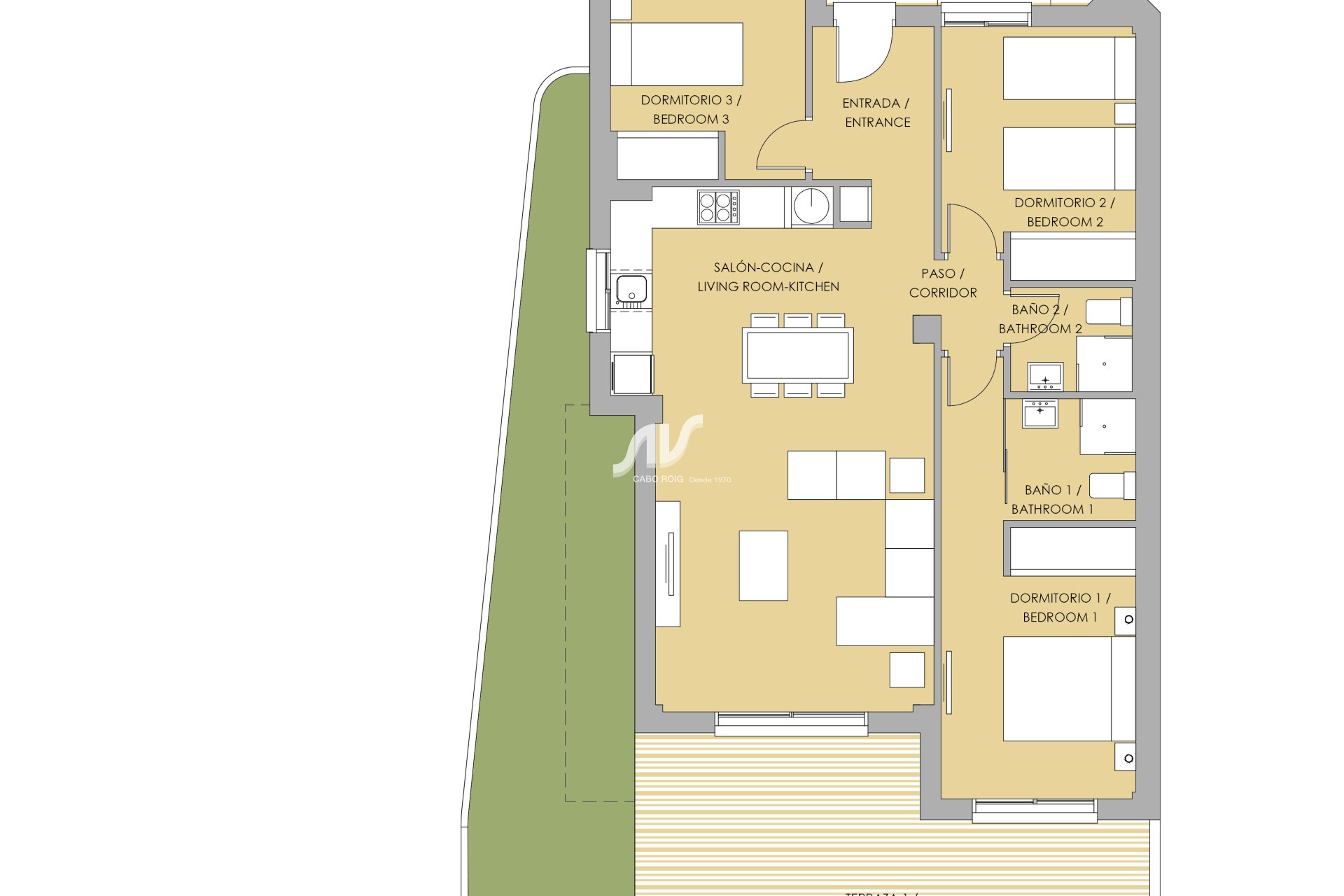 Das Innere der Wohnungen ist sorgfältig gestaltet, um Komfort und Funktionalität zu bieten. Die Apartments, High-Bungalows und Low-Bungalows sind in Konfigurationen mit 2 oder 3 Schlafzimmern erhältlich, alle mit 2 Bädern, was Komfort für Familien unterschiedlicher Größe garantiert. Die Immobilien verfügen über Einbauschränke, die den Stauraum optimieren und Ordnung halten. Der Keramikboden verleiht einen modernen Touch und ist pflegeleicht, ideal für den heutigen Lebensstil. Darüber hinaus sind die Wohnungen mit Klimaanlage und Vorinstallation für Klimaanlagen ausgestattet, um das ganze Jahr über ein angenehmes Ambiente zu gewährleisten.