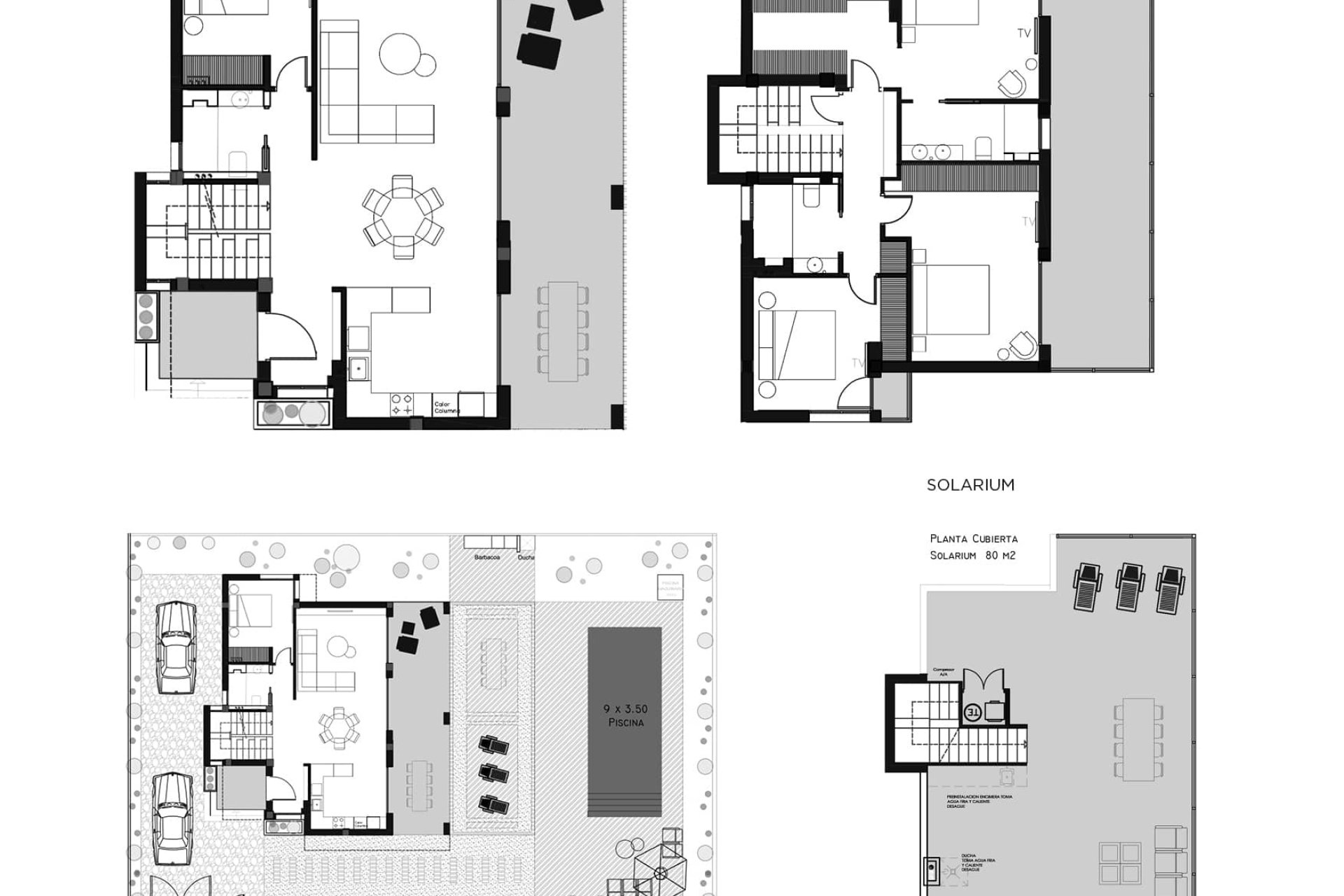 Der Außenbereich dieser Häuser ist eine wahre Oase der Entspannung. Jede Immobilie verfügt über einen privaten Garten, perfekt, um das mediterrane Klima zu genießen. Das Vorhandensein eines privaten Pools verleiht einen Hauch von Luxus und ermöglicht es, sich an den heißesten Tagen abzukühlen. Darüber hinaus bieten die Terrassen und das Solarium zusätzliche Außenbereiche für Freizeitaktivitäten, ideal für Familientreffen oder einfach, um einen ruhigen Moment zu genießen. Die Pergola bietet Schatten und einen gemütlichen Ort zum Ausruhen während der intensiven Sonnenstunden.