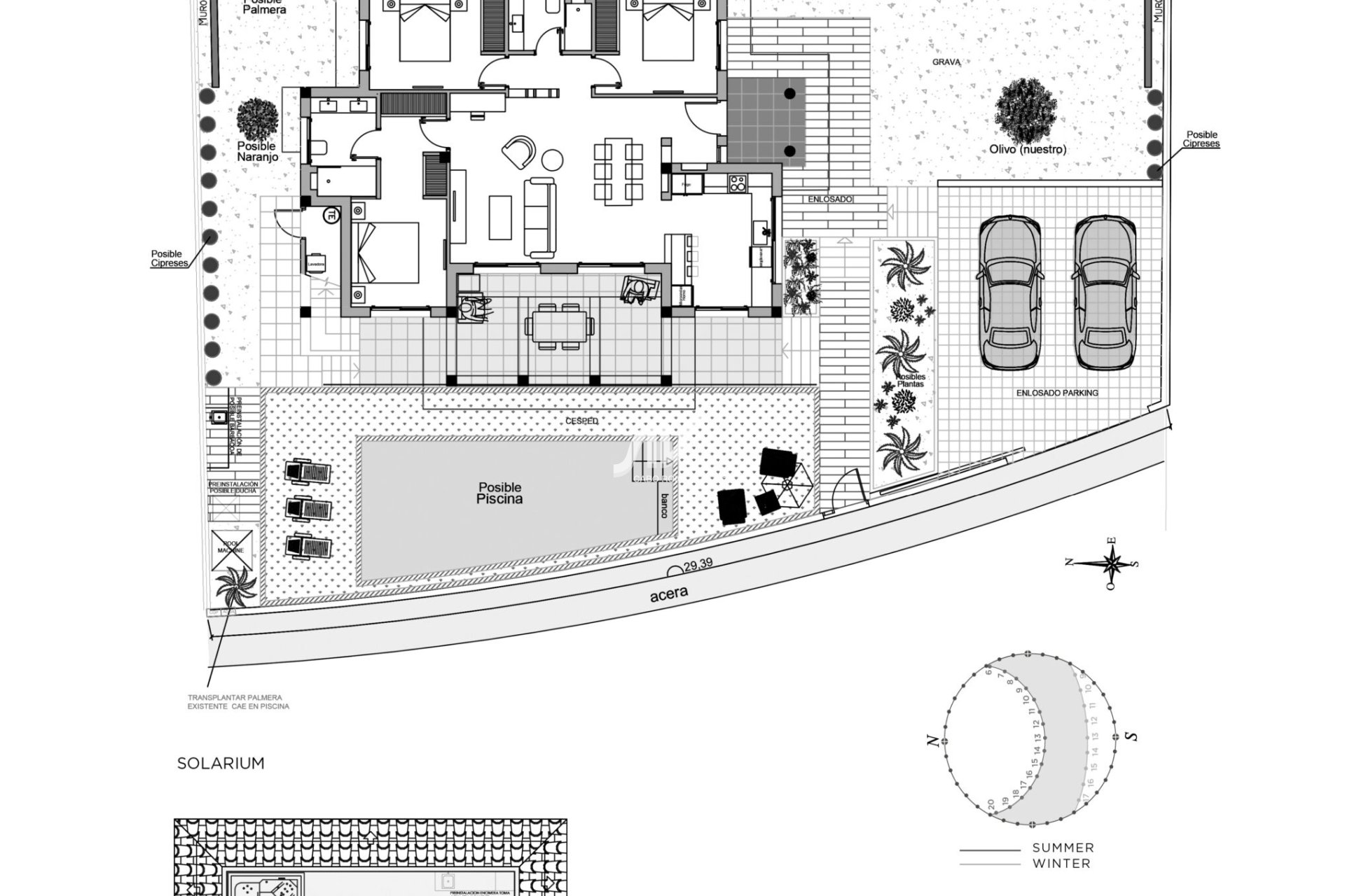 Der Außenbereich dieser freistehenden Immobilie in Ciudad Quesada ist so gestaltet, dass er das mediterrane Klima optimal nutzt. Das Vorhandensein eines privaten Pools ist ein wahrer Luxus, der erfrischende Bäder in der Privatsphäre Ihres Zuhauses ermöglicht. Darüber hinaus bietet der Garten einen grünen Bereich, in dem Sie sich entspannen oder Outdoor-Aktivitäten genießen können. Die Terrasse ist ein perfekter Ort für Mahlzeiten im Freien oder einfach, um die Aussicht zu genießen. Die Pergola bietet Schatten und einen zusätzlichen ästhetischen Touch, der eine einladende Atmosphäre für Familientreffen oder mit Freunden schafft. Das Solarium ist ein weiteres Highlight und bietet zusätzlichen Raum zum Sonnenbaden oder um die Panoramaaussicht zu genießen.