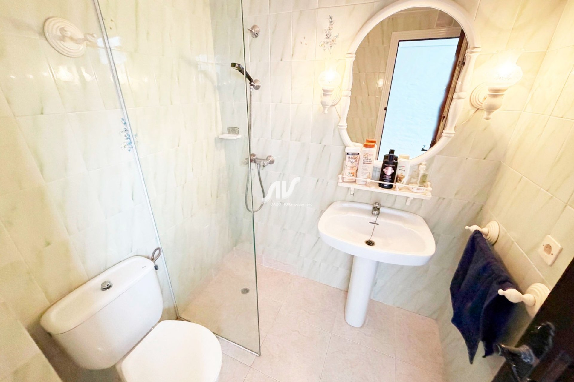 Die Lage ist hervorragend: direkt gegenüber dem Pool der Wohnanlage Los Angius, umgeben von gepflegten Gärten und mediterraner Architektur, die Ruhe und Exklusivität vermittelt. Nur 300 Meter von den traumhaften Stränden von Cabo Roig entfernt, bekannt für klares Wasser, feinen Sand und eine der schönsten Promenaden der Costa Blanca.