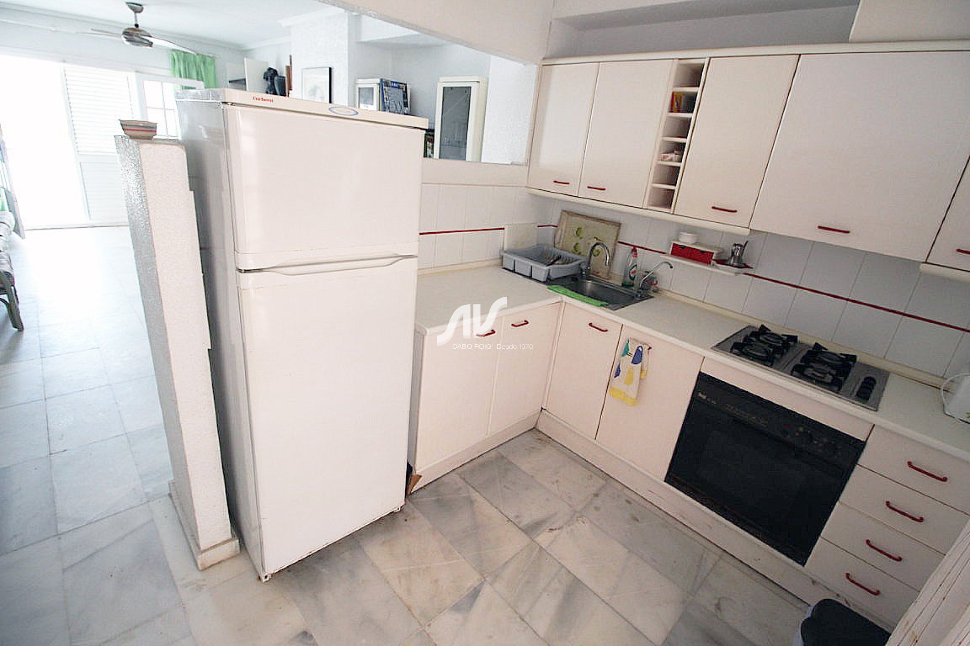 Duplex of about 130 m² plus terraces, distributed in semi-basement, ground, high and solarium. It consists of a large garage, a spacious living room with fireplace, kitchen, bathroom and toilet, three bedrooms and patio, porch, terrace and solarium. The residential where it is located has large garden areas and community pool and is in first line of the beach of Cala Capitán in Cabo Roig. From the property to the sand of the beach there are approximately 30 m away and the views from the house are unbeatable, direct to the beach. A very special property in a privileged location.