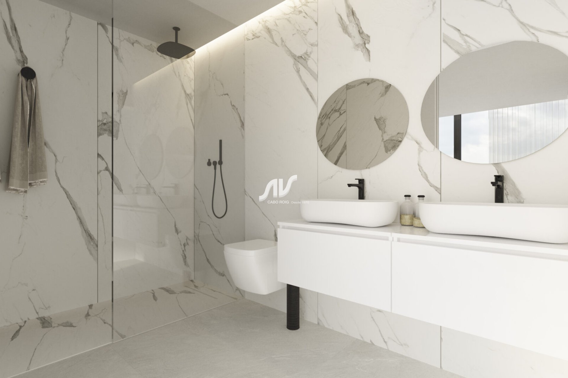 The interior of the villa is designed to offer maximum comfort and elegance. With four bedrooms, each equipped with built-in wardrobes, the villa provides ample storage and organization space. The four bathrooms are designed with a modern and functional style. Underfloor heating ensures a warm and cozy environment during the colder months. The kitchen is equipped with high-quality appliances, making meal preparation easy and offering a top-notch culinary experience. Every interior space has been designed to maximize the comfort and lifestyle of its residents.