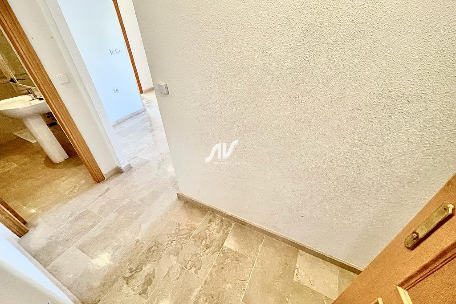 This impressive penthouse apartment has the better sea views in Orihuela Costa, located on the seafront in the prestigious urbanization of Aguamarina. The apartment is located on the third and last floor, on the south and east corner, of an apartments building with private pool and communal solarium, next to all kinds of services, in front of the promenade of Aguamarina and very close to the beach. It has about 75 m² of surface, with two large bedrooms facing the sea, spacious living room kitchen and two bathrooms. It is in perfect condition of use and maintenance. It also has an underground parking space.