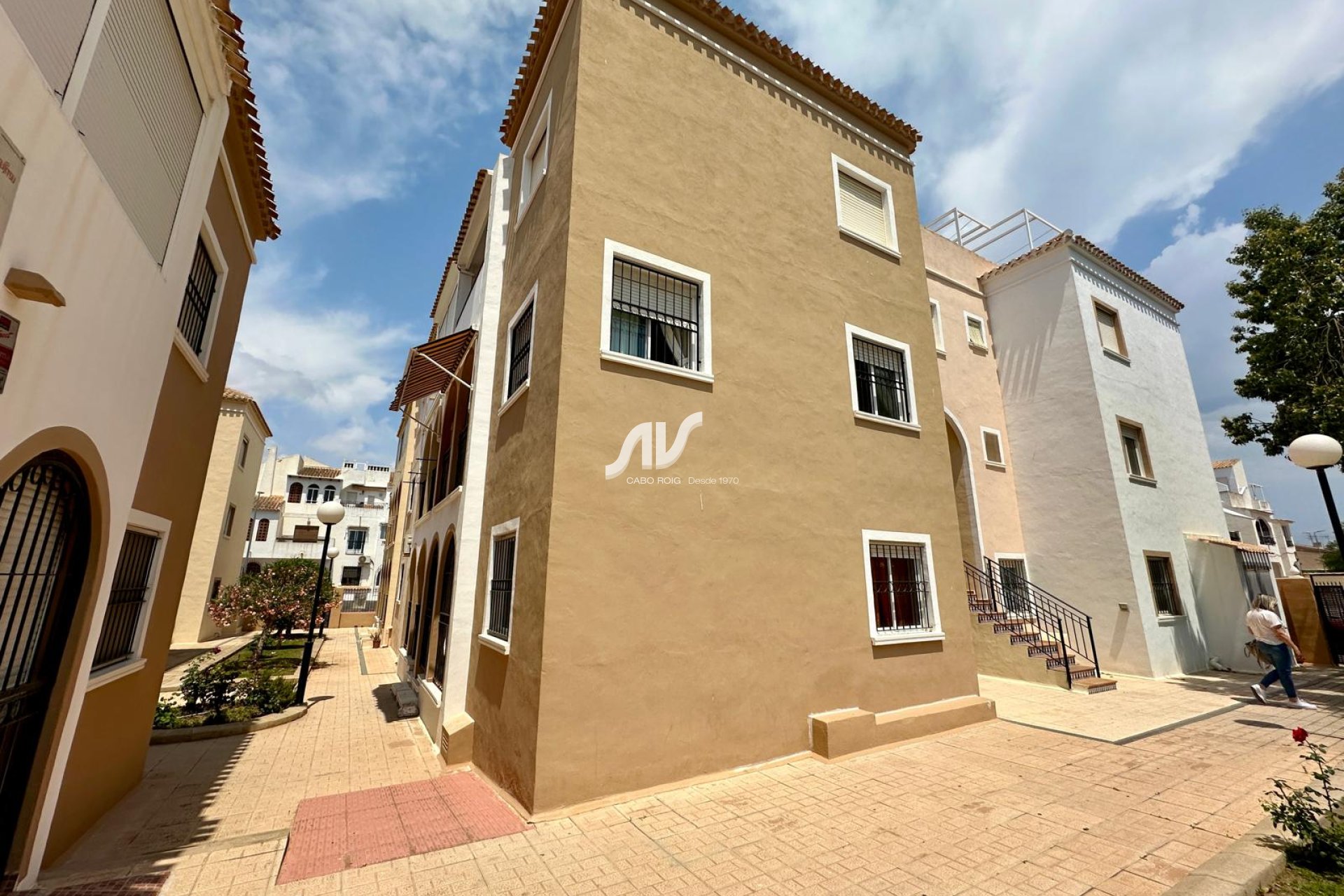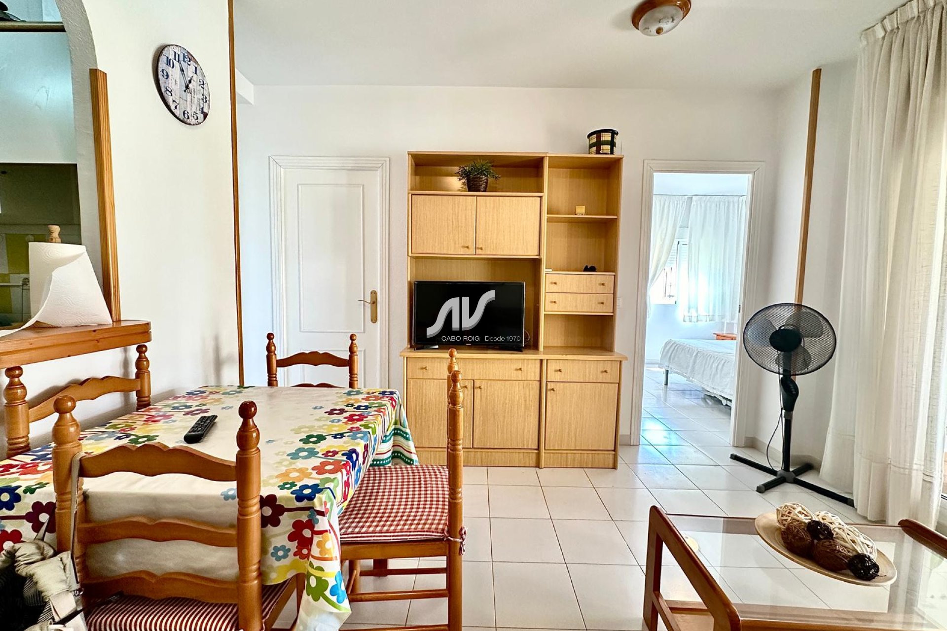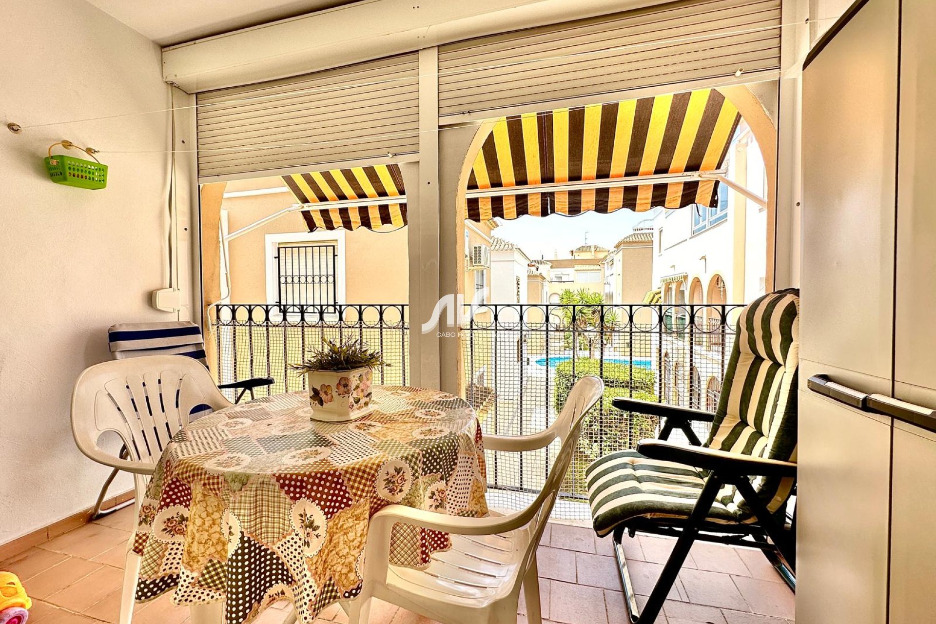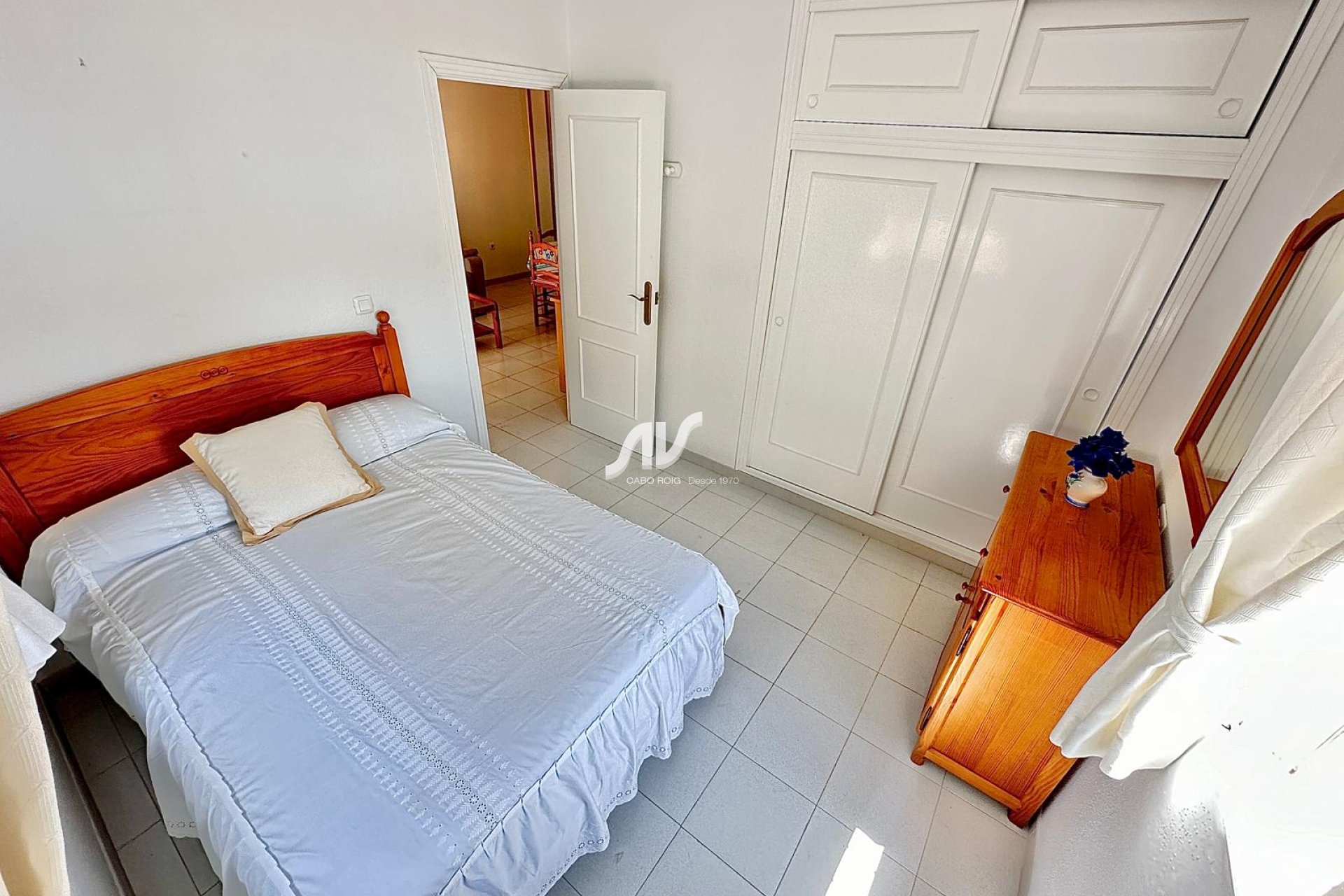 Bungalow on the upper floor on the corner, east facing south, with two bedrooms, a bathroom, living room, dining room, kitchen and a spacious porch.