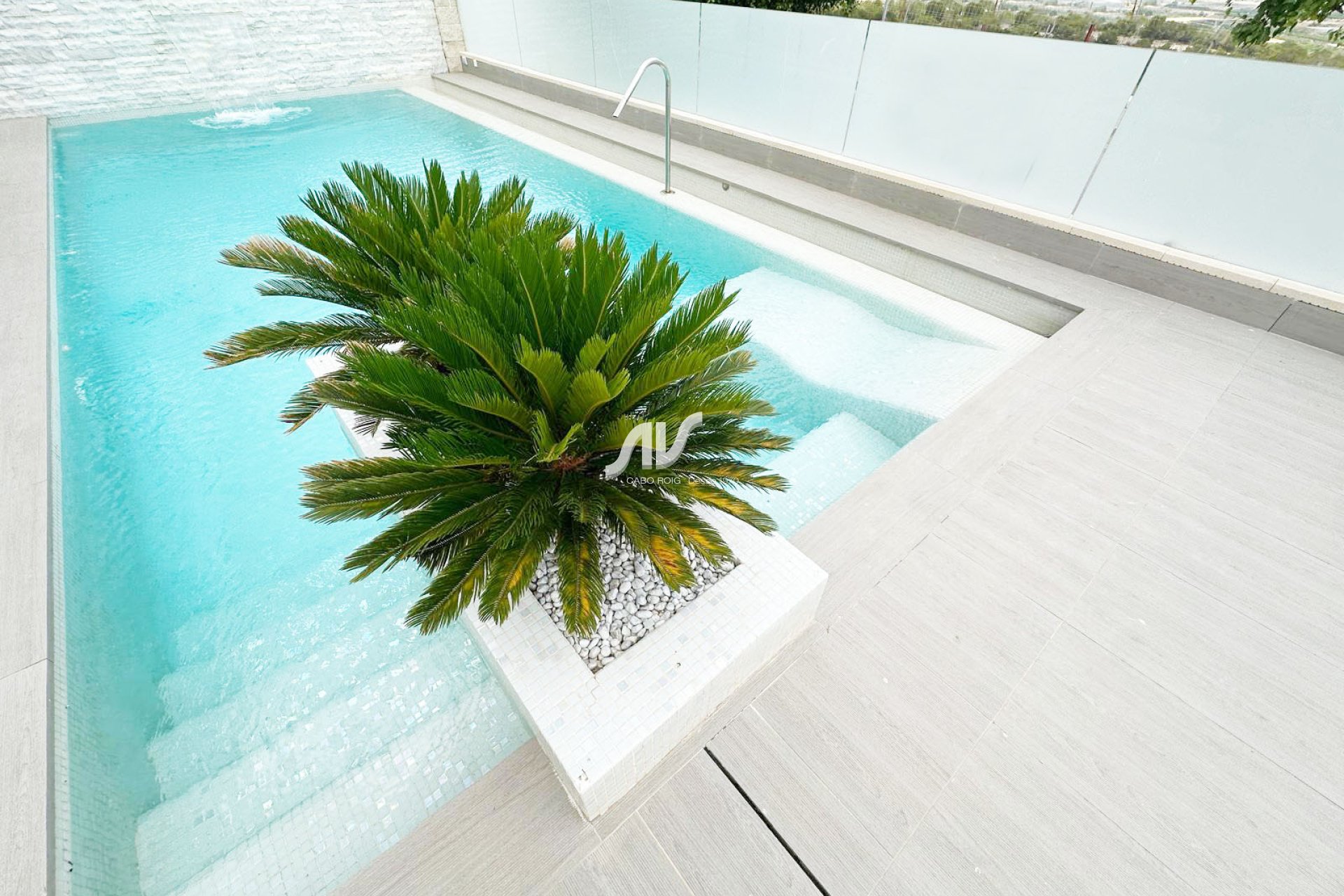 Villaen kompletteres av to terrasser med uslåelig utsikt, landskapshage med privat basseng, fossefall og jacuzzi. Utstyrt med kanalklimaanlegg, gulvvarme i hele huset, privat parkering for flere kjøretøy, og leveres møblert og utstyrt (unntatt personlige eiendeler).