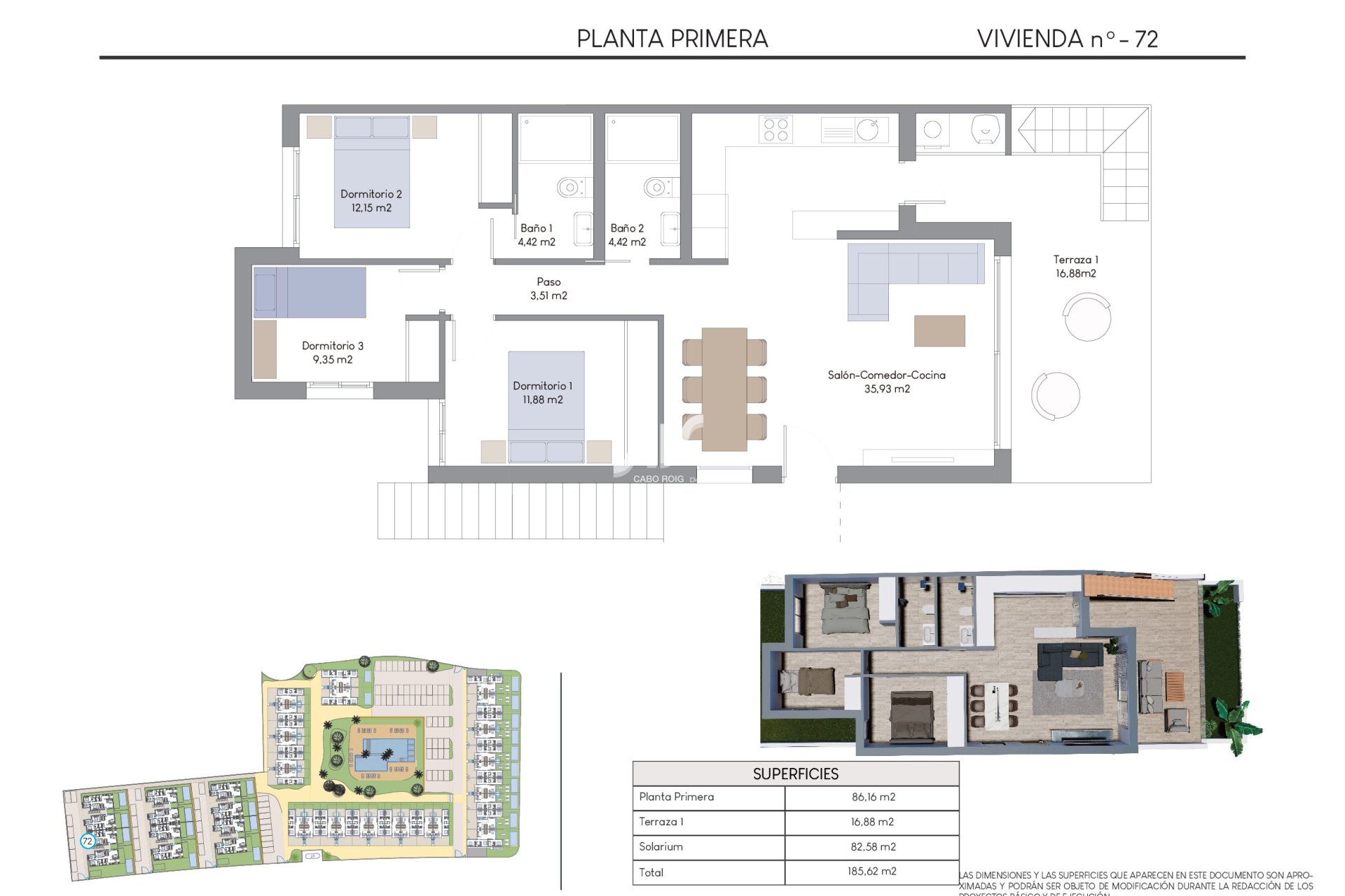 Otoczenie zewnętrzne tego kompleksu w Finestrat jest starannie zaprojektowane, aby uzupełniać naturalne piękno okolicy. Nieruchomości posiadają prywatne tarasy i ogrody, oferując idealną przestrzeń do korzystania z śródziemnomorskiego klimatu. Ponadto, każda nieruchomość ma solarium, idealne do relaksu i opalania się w prywatności własnego domu. Społeczność obejmuje również rozległe tereny zielone, zapewniając zielone i spokojne otoczenie do spacerów lub odpoczynku na świeżym powietrzu. Bliskość morza, zaledwie 3 km, pozwala cieszyć się panoramicznymi widokami i szybkim dostępem do pobliskich plaż.