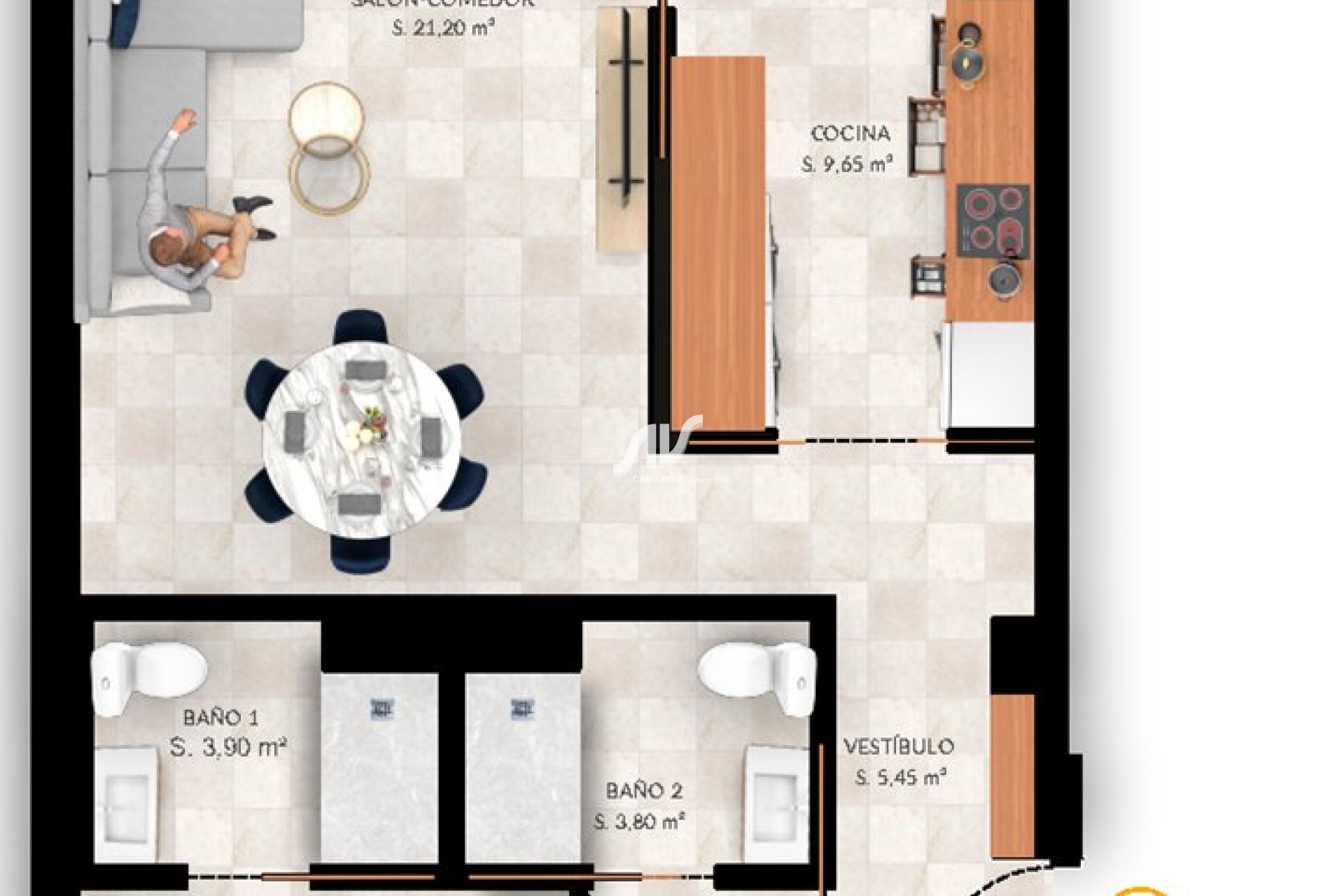 Wnętrza mieszkań zaprojektowano z myślą o komforcie i funkcjonalności. Wszystkie nieruchomości są w pełni umeblowane i wyposażone w nowoczesne urządzenia. Podłogi z gresu porcelanowego dodają elegancji i trwałości. Wbudowane szafy oferują efektywne przechowywanie, a klimatyzacja zapewnia przyjemne środowisko w każdej porze roku. Z układem obejmującym dwie sypialnie i dwie łazienki, te mieszkania są zaprojektowane, aby zaspokoić potrzeby każdej rodziny.