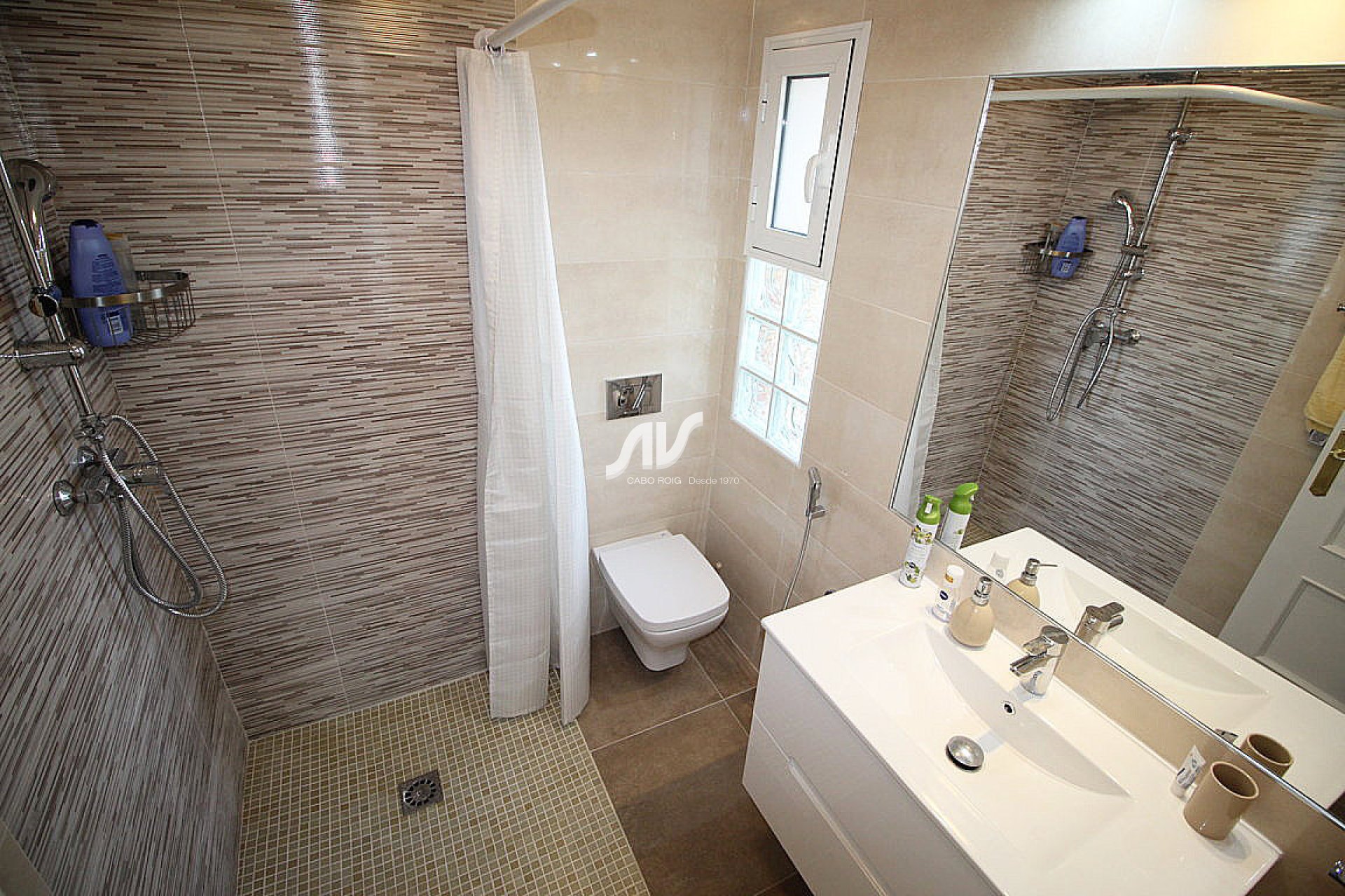 Chalet independiente, Con aproximadamente 520 m2 de parcela y 160 de vivienda en dos plantas. Distribuido en salón, comedor-cocina, 2 trasteros, cuatro dormitorios y 5 baños, más porche y una soleada terraza en planta alta. Dispone de varias terrazas, zona de aparcamiento y un precioso y muy espacioso jardín. Tiene acceso desde dos calles, está orientada al Sur y tiene derecho al uso de una enorme piscina comunitaria que se encuentra justo al lado de la propiedad. La vivienda acaba de ser reformada íntegramente utilizando primeras calidades y estilo moderno por dentro y en un atractivo estilo mediterráneo por fuera. Se vende amueblada con muebles de mucha calidad y decorada con estilo moderno y elegante. Se ubica en la Prestigiosa zona residencial de Los Dolses, muy cerca de todo tipo de servicios, a 1 km del campo de golf de Villamartín, a 2 km de las playas de Cabo Roig y La Zenia y a 1 km del centro comercial Zenia Boulevard.