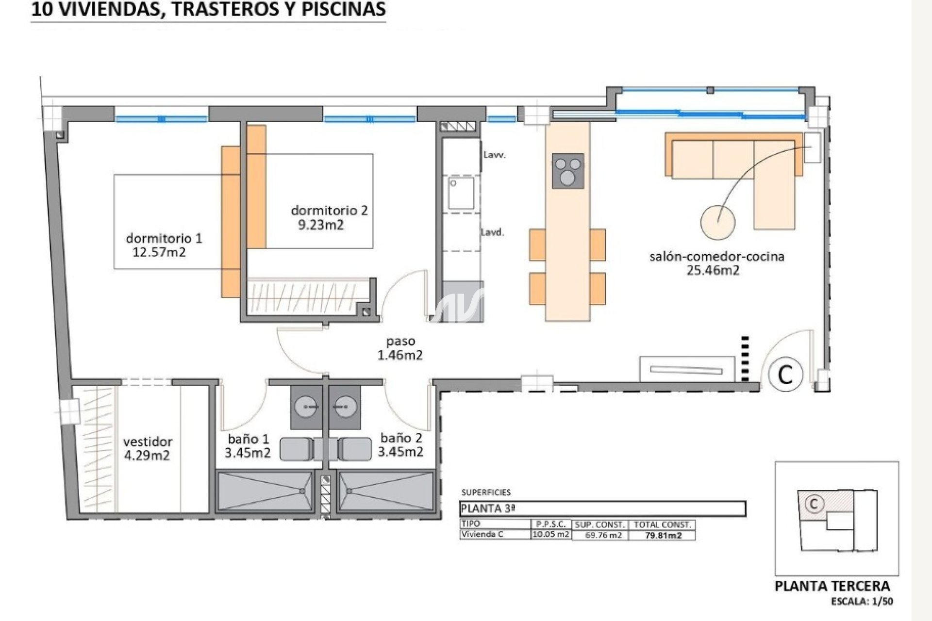 Los interiores destacan por su elegancia y funcionalidad. Los suelos de gres porcelánico aportan un acabado moderno y fácil de mantener. Las viviendas están equipadas con electrodomésticos, lo que facilita la vida diaria desde el primer día. Los armarios empotrados ofrecen un amplio espacio de almacenamiento, manteniendo el orden y la estética. La distribución incluye opciones de dos o tres dormitorios y dos o tres baños, adaptándose a diferentes necesidades familiares. La posibilidad de incluir un garaje o aparcamiento añade comodidad y seguridad.
