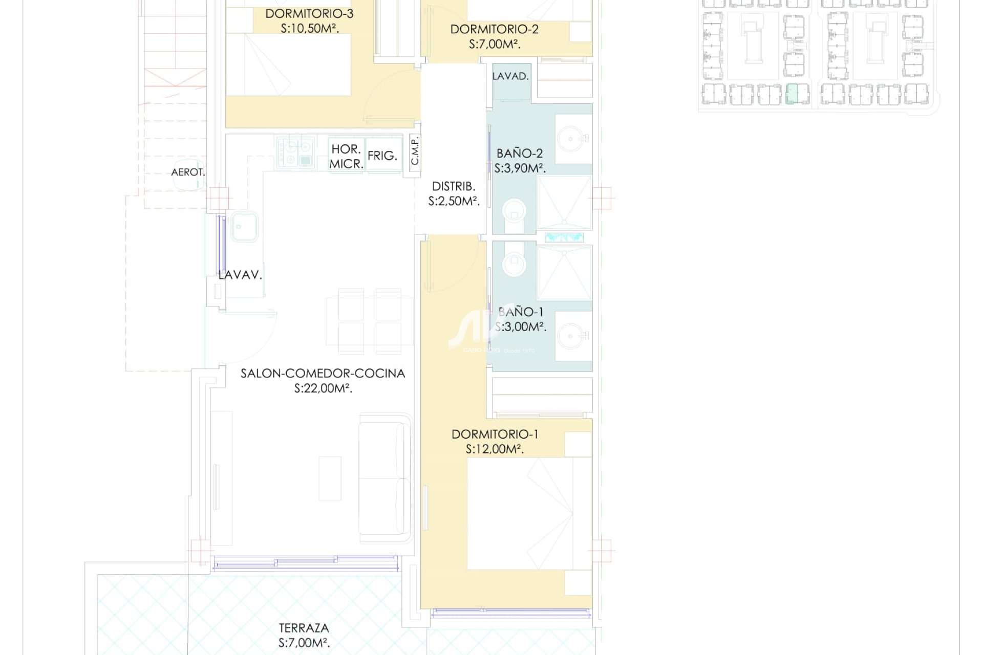 Ubicado en la encantadora localidad de Torrevieja, este conjunto residencial ofrece una selección de 42 propiedades que incluyen bungalows, bungalows con solarium y bungalows con jardín. La ubicación es ideal para aquellos que buscan disfrutar de la vida cerca del mar, ya que se encuentra a solo 3.5 km de la costa. Además, el aeropuerto más cercano está a 21.814 km, facilitando el acceso para quienes viajan con frecuencia. Las viviendas están diseñadas para ofrecer comodidad y funcionalidad, con opciones de 2 y 3 dormitorios y 2 baños, adaptándose a diferentes necesidades familiares.
