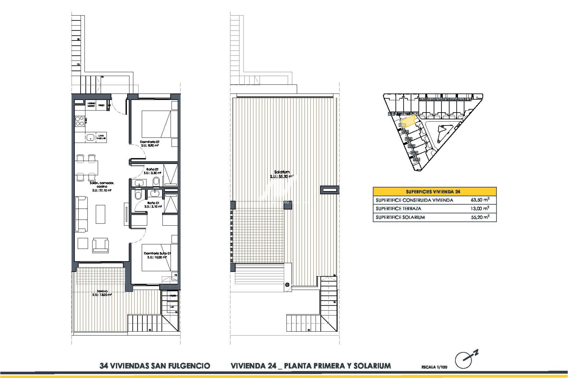 Ubicado en el encantador municipio de San Fulgencio, este conjunto residencial ofrece una selección de 12 bungalows, divididos en dos tipologías: bungalows con solarium y bungalows con jardín. Este entorno residencial se encuentra a tan solo 34 km del aeropuerto, lo que facilita el acceso para quienes viajan con frecuencia. La ubicación estratégica de San Fulgencio proporciona un ambiente tranquilo y acogedor, ideal para quienes buscan un hogar en una zona apacible pero bien conectada.