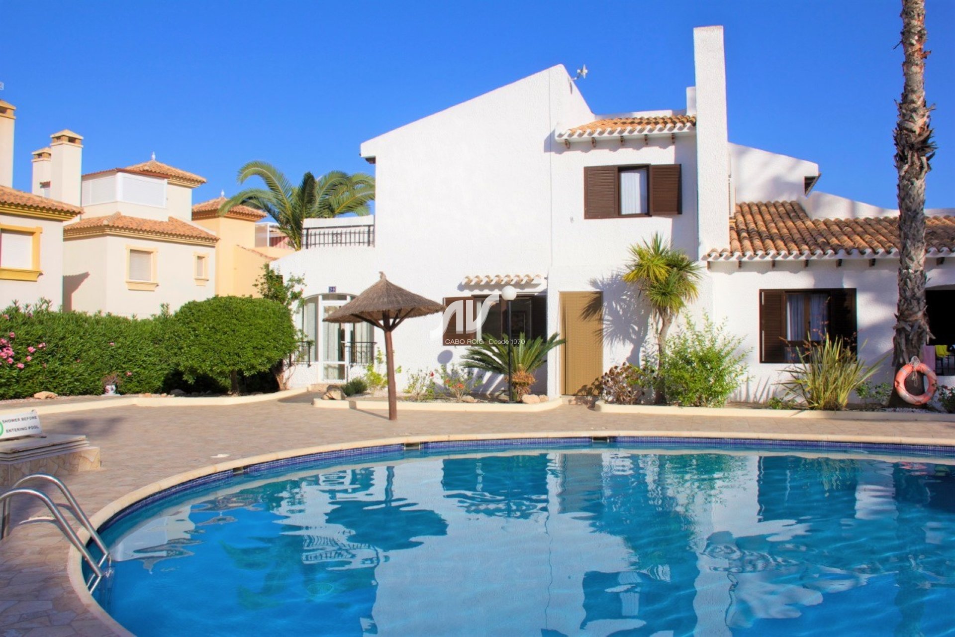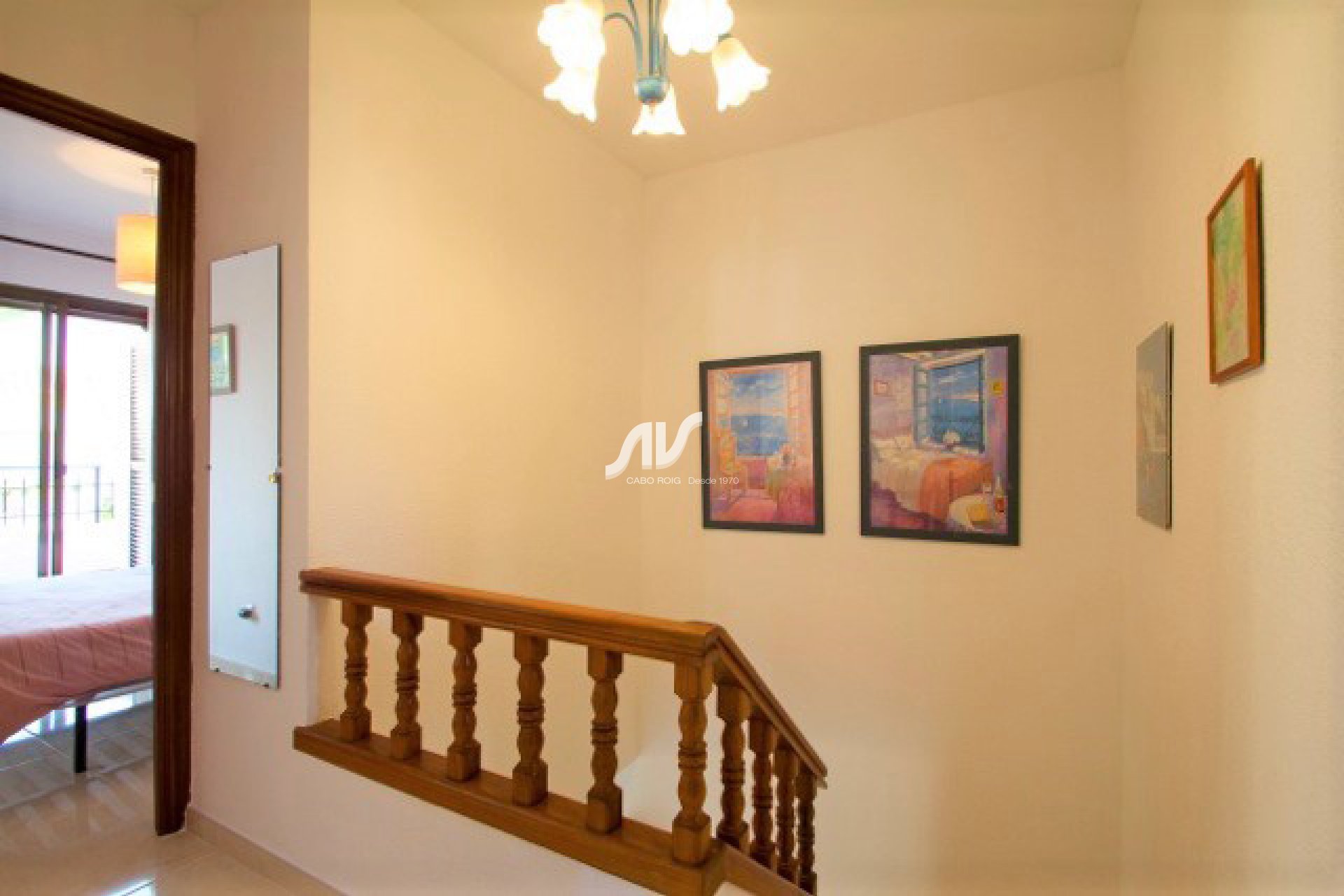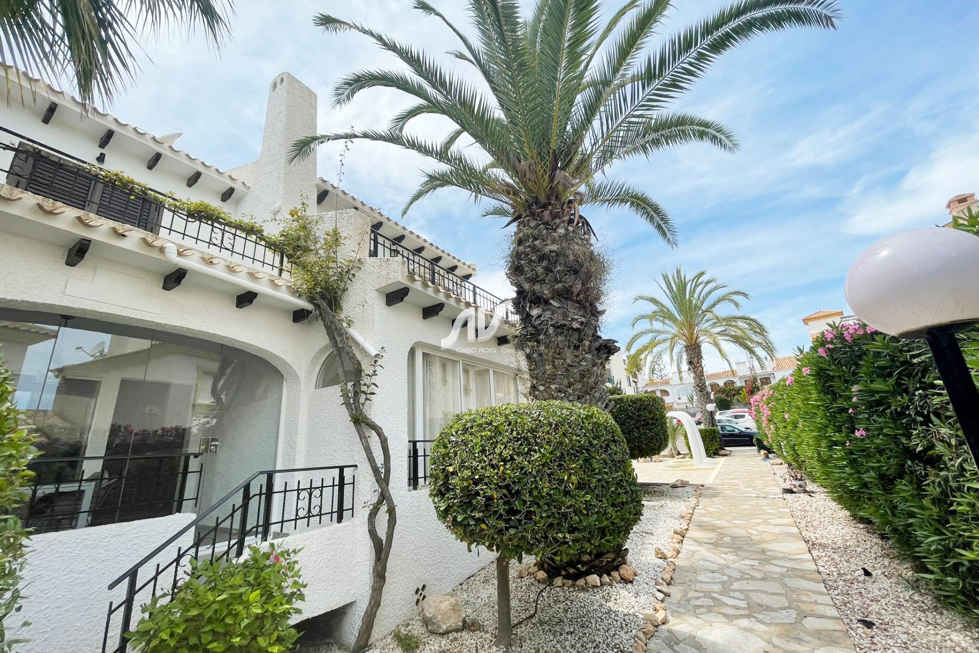 Chalet adosado en exclusivo residencial privado de Cabo Roig, con preciosas zonas verdes, gran piscina y aparcamiento privado. Se encuentra situado muy cerca de la playa de Cala Capitán, a unos 2 minutos a pie.