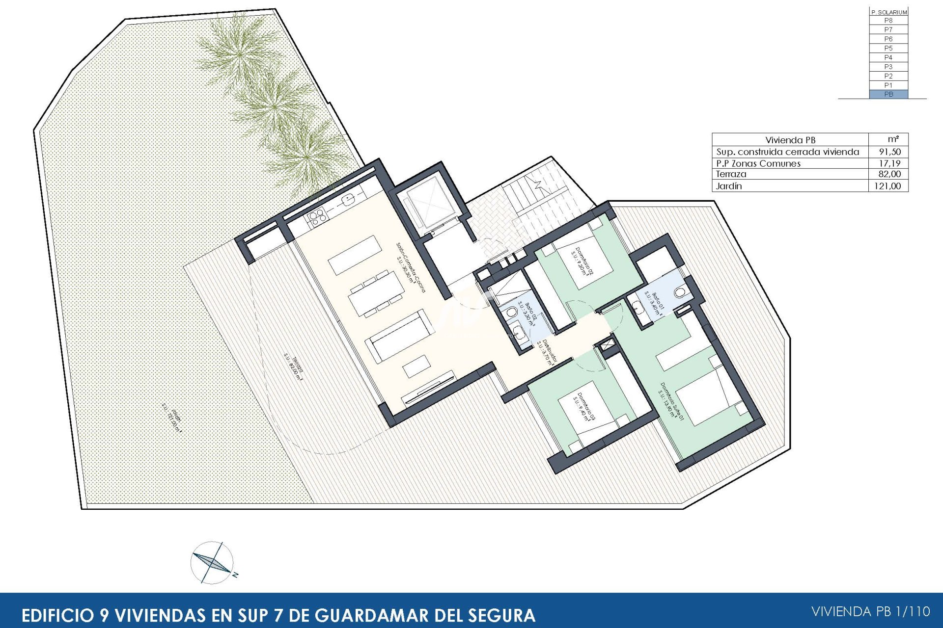 Los exteriores de estas viviendas están pensados para maximizar el disfrute del entorno natural. Todas las propiedades cuentan con terrazas, perfectas para relajarse al aire libre y disfrutar del clima soleado de la región. Además, algunas tipologías incluyen jardines privados, ofreciendo un espacio adicional para actividades al aire libre o simplemente para disfrutar de un oasis personal. Los áticos, por su parte, disponen de solárium, proporcionando un espacio exclusivo para tomar el sol con total privacidad.