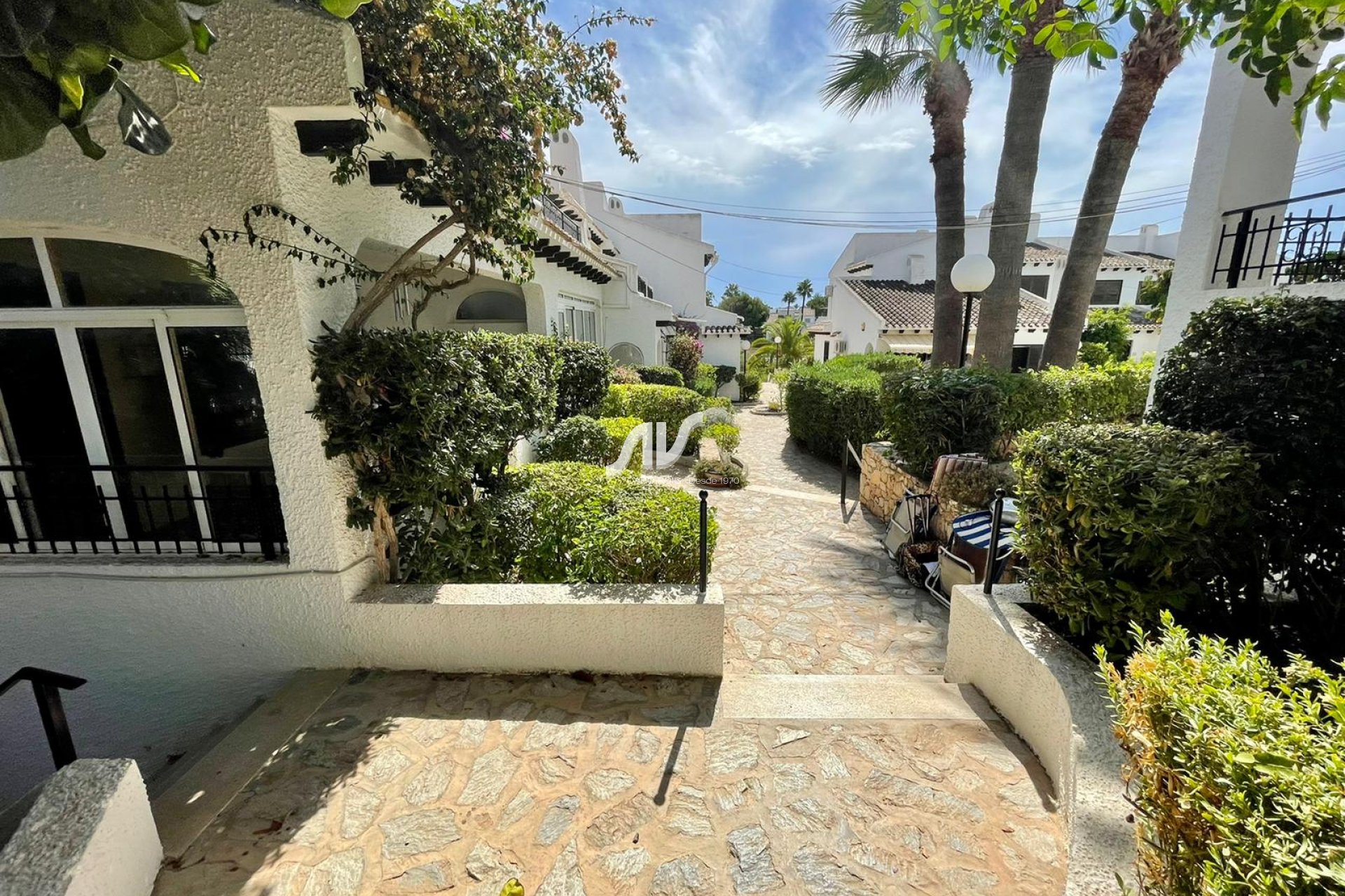 Exclusivo chalet adosado de 3 dormitorios y 2 baños más apartamento de 1 dormitorio ubicado en el precioso residencial de Los Angius en Cabo Roig, un encantador conjunto de estilo mediterráneo con piscina, amplias zonas verdes y aparcamiento privado, se encuentra a 500m de la playa de La Caleta.