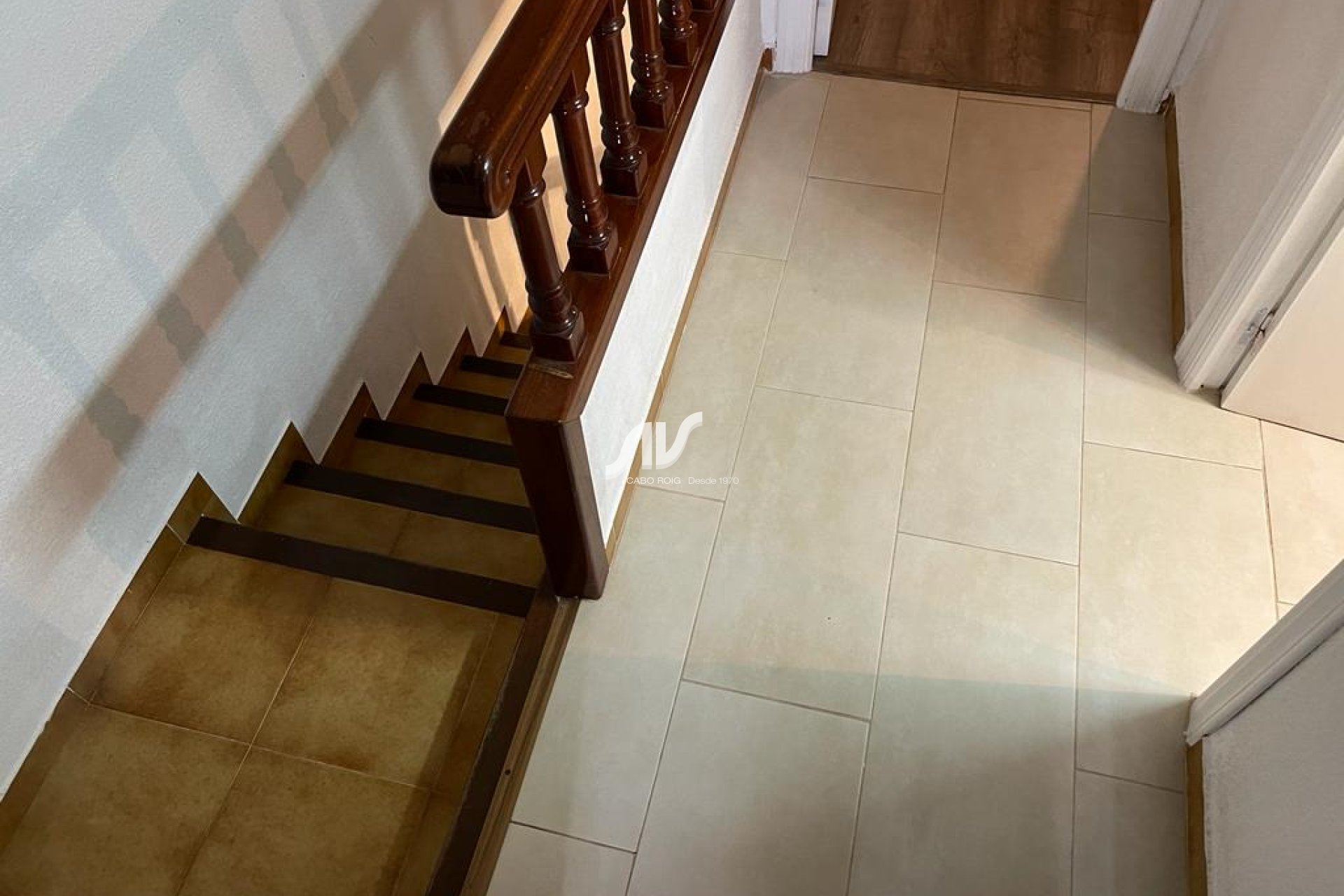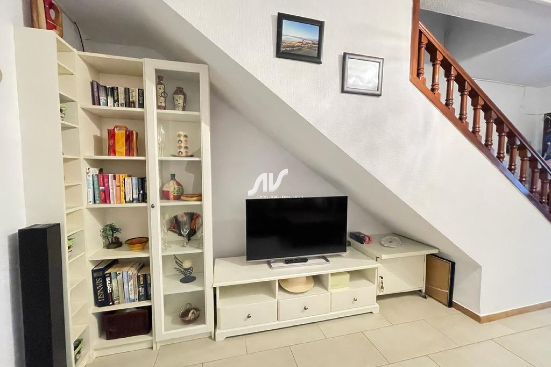 Bungalow en dos plantas ubicado en Los Angius, un exclusivo residencial privado de Cabo Roig, con dos grandes piscinas, preciosas zonas ajardinadas y dos aparcamientos, a 500m de la playa de La Caleta.
