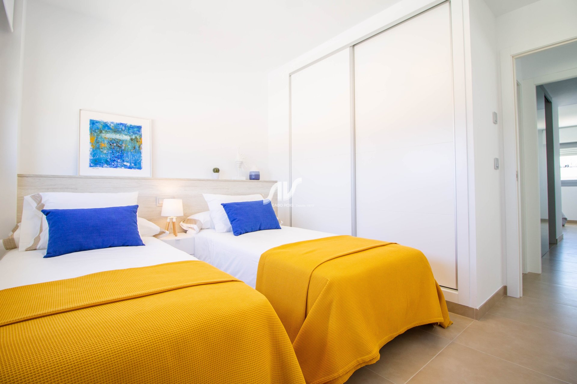 El interior de estas viviendas en Vistabella está diseñado para ofrecer un ambiente acogedor y moderno. Los suelos de cerámica aportan un toque contemporáneo y son fáciles de mantener, mientras que los armarios empotrados en los dormitorios proporcionan un almacenamiento eficiente y ordenado. La distribución de las propiedades, con dos o tres dormitorios y dos baños, está pensada para maximizar el espacio y la comodidad. Las cocinas y salas de estar están diseñadas para ser funcionales y acogedoras, creando un ambiente perfecto para la vida diaria y el entretenimiento. Cada detalle ha sido cuidadosamente considerado para ofrecer un hogar que combina estilo y practicidad.