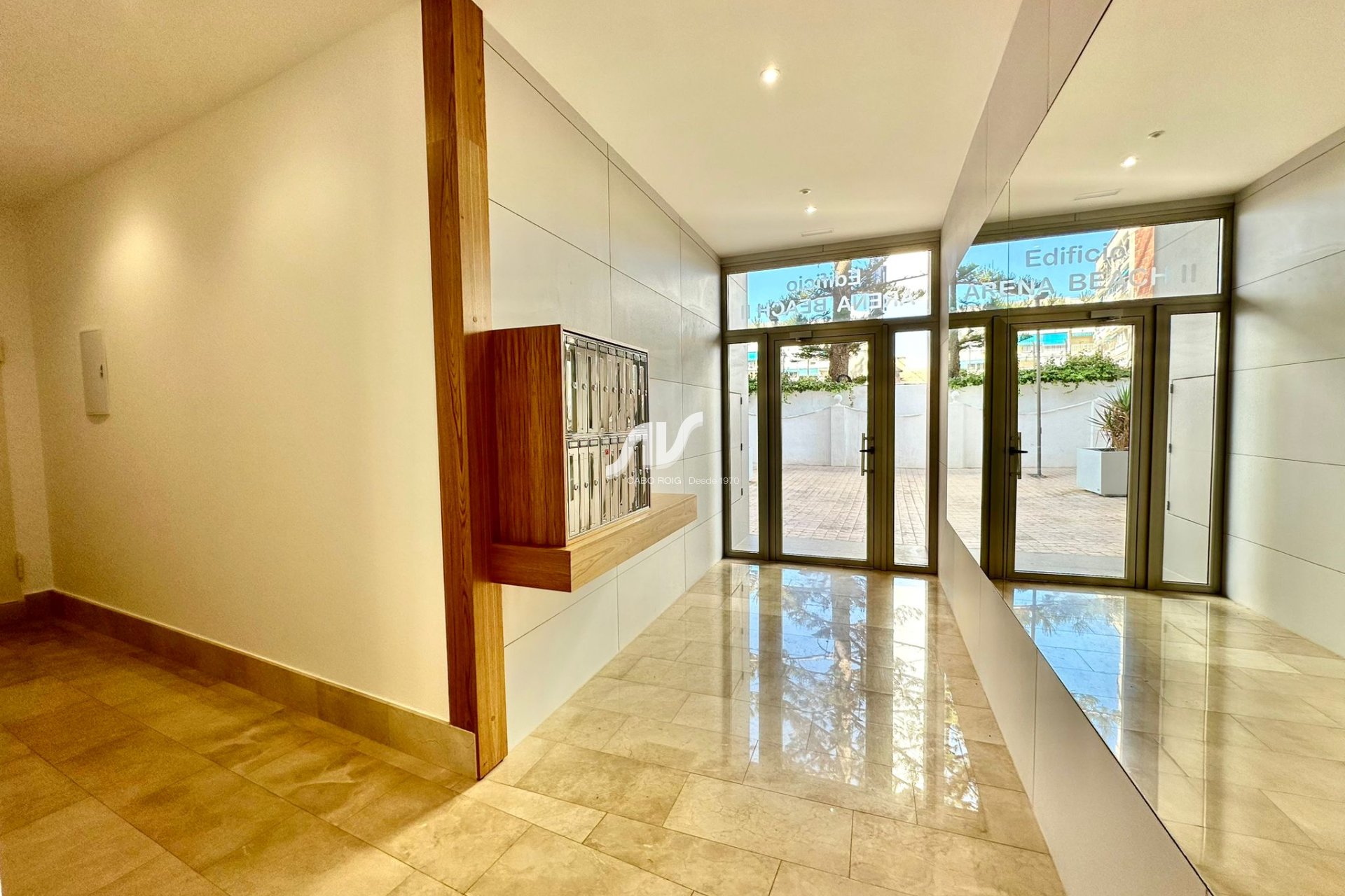 Situada en primera planta, se distribuye en 3 dormitorios, dos baños, un salón-cocina muy espacioso y una espectacular terraza de 19m2 mirando a la playa.