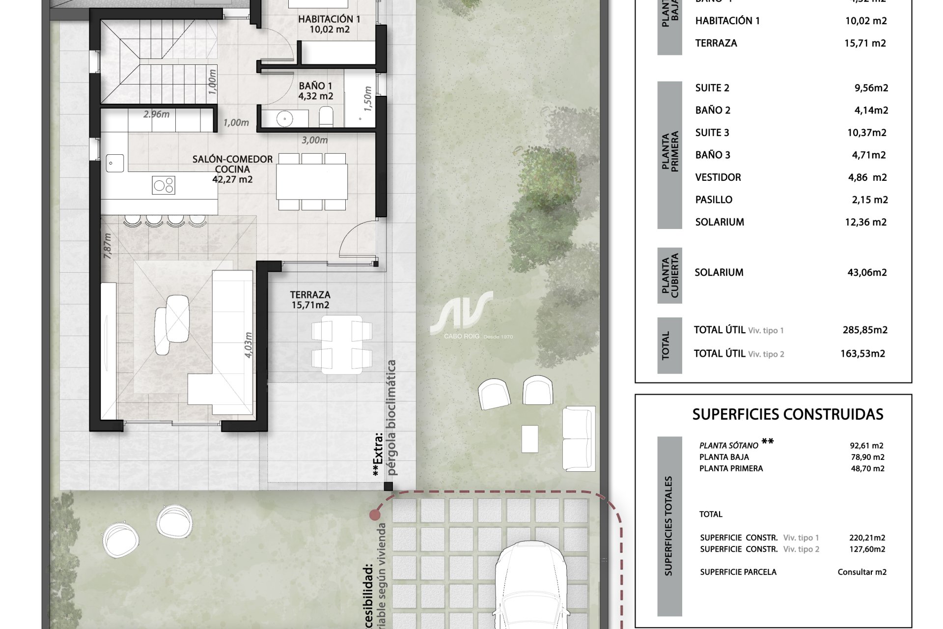 Los exteriores de estas viviendas independientes en Finestrat están pensados para disfrutar del clima mediterráneo. Cada propiedad cuenta con un jardín privado y una terraza, ideales para momentos de relax al aire libre. Además, disponen de un solárium que ofrece un espacio adicional para disfrutar del sol y las vistas panorámicas al mar. La presencia de una piscina privada en cada vivienda añade un toque de lujo y exclusividad, permitiendo disfrutar de un refrescante baño en la privacidad de tu hogar. Las pérgolas complementan el diseño exterior, proporcionando sombra y un espacio acogedor para reuniones al aire libre.