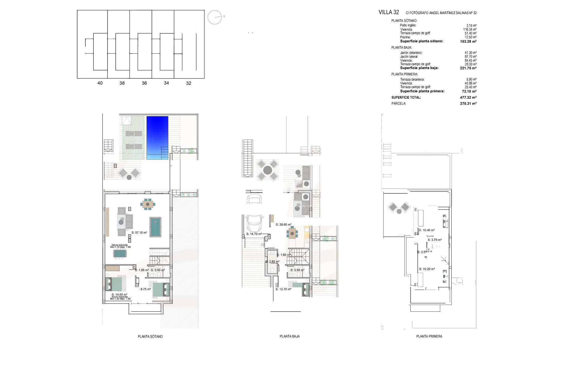 Los exteriores de estos adosados en Los Alcázares están diseñados para maximizar el disfrute del clima mediterráneo. Cada propiedad cuenta con un jardín privado, ideal para crear un espacio verde personal donde relajarse o disfrutar de actividades al aire libre. Además, disponen de una terraza que se convierte en el lugar perfecto para disfrutar de comidas al aire libre o simplemente relajarse al final del día. Para aquellos que buscan refrescarse durante los cálidos días de verano, cada adosado incluye una piscina privada, proporcionando un oasis personal de tranquilidad y diversión. El diseño exterior se complementa con la inclusión de persianas eléctricas, que no solo añaden comodidad sino también un toque de modernidad y seguridad.