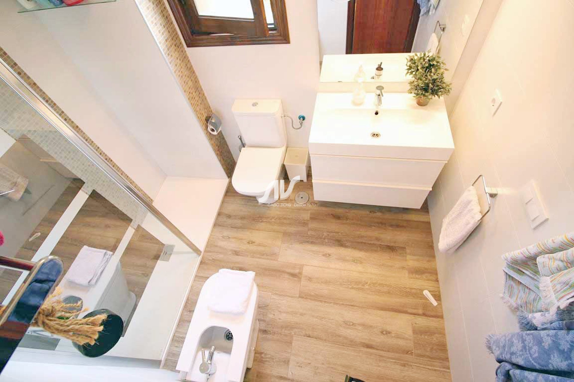La ubicación es inmejorable, justo enfrente de la encantadora piscina del precioso residencial llamado Los Angius, que posee amplias zonas ajardinadas, aparcamientos privados y un estilo de construcción único, de un carácter marcadamente mediterráneo y ubicado a sólo 400 metros de la prestigiosa playa de Cabo Roig y su paseo marítimo.