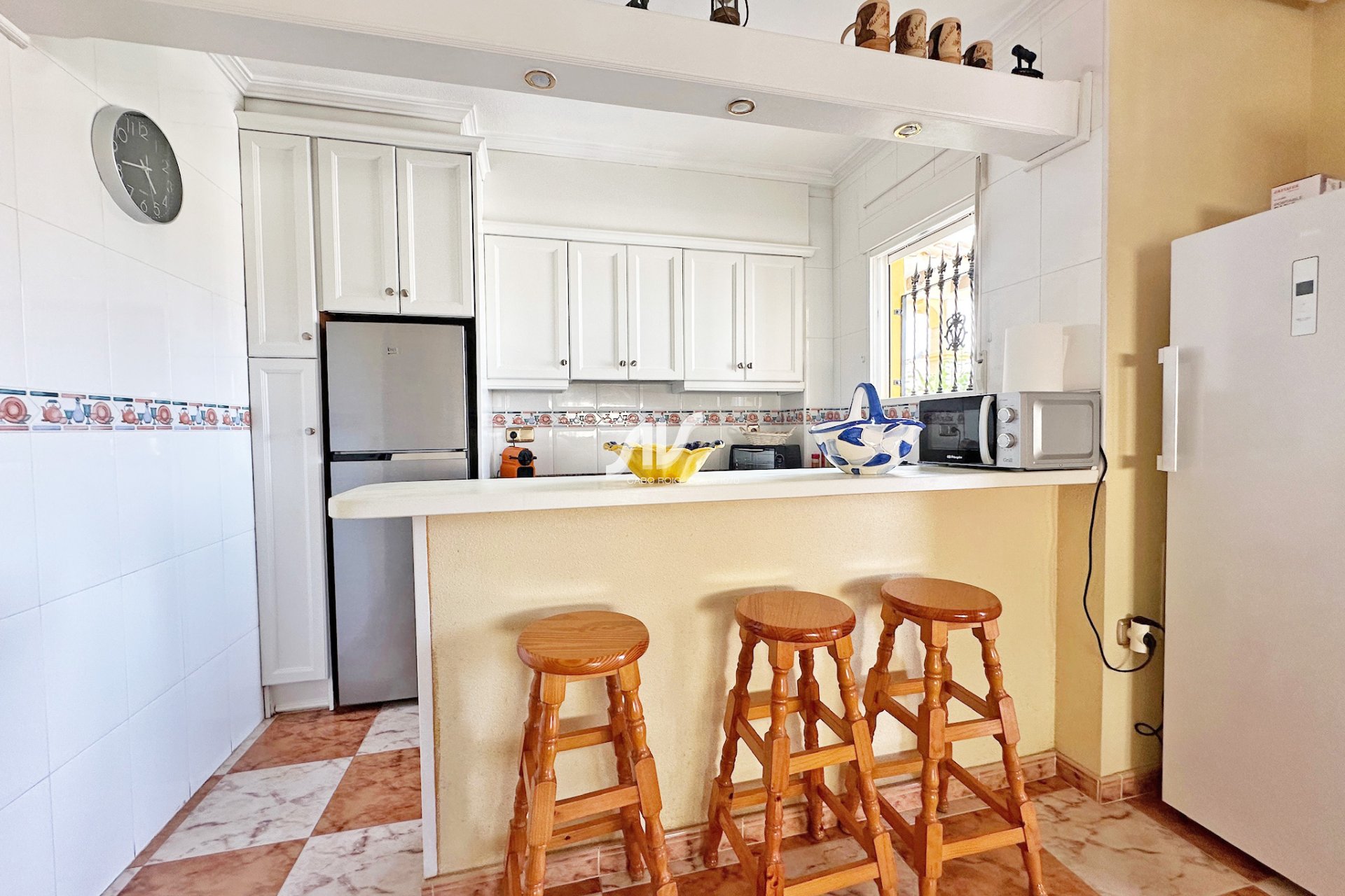 Se vende estupendo chalet adosado en la codiciada urbanización La Zenia, ubicado a tan solo 700 metros de la playa. La propiedad, con orientación oeste, destaca por su gran luminosidad, su excelente estado de conservación y su completo equipamiento: se vende totalmente amueblado y equipado, listo para entrar a vivir.